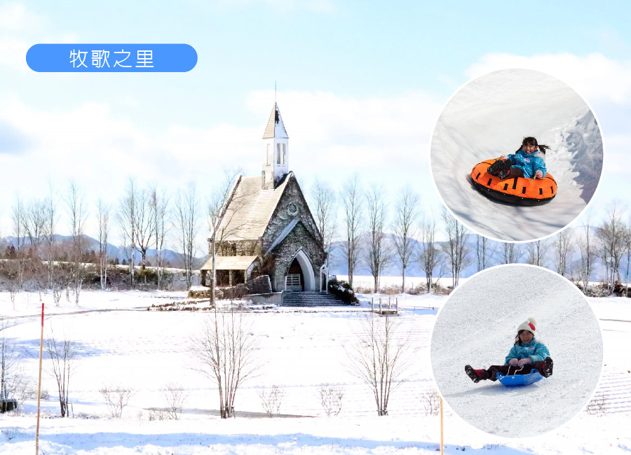 【牧歌之里(戲雪趣◆雪盆、雪地甜甜圈、雪地泛舟)】牧歌之里(戲雪趣◆雪盆、雪地甜甜圈、雪地泛舟):冬天的牧歌之里被皚皚白雪包覆,能夠滑雪、坐雪橇,或是乘坐雪地泛舟遊覽雪景,還可以和親友打打雪仗,享受冬日特有的戶外活動。冬日雖無法在戶外見到可愛的動物們,但還是能進牧舍餵牛、羊與馬。 園內還有一座「小木偶童話花園」,是由當地鬼才藝術家水野政雄一手打造,小木偶在探險樂園中組樂團、城堡,玩得不亦樂乎。木偶雕刻的線條簡單卻維妙維肖,童趣十足。歡迎您來到這個白雪與大地編織而成的夢幻天地,寬敞空間所打造出獨一無二的休閒樂園,希望每一位遊客在此都能擁有美好的冬日回憶。 《雪盆或雪地甜甜圈》60分鐘無限暢玩。可單人乘坐,12歲以下兒童為了安全起見,務必有大人同乘,謝謝。