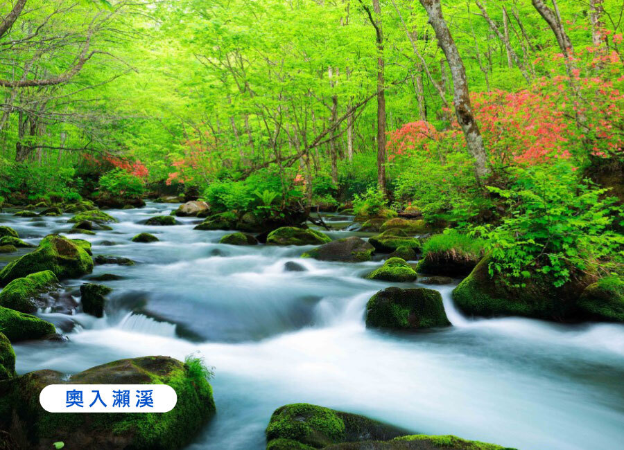 【奧入瀨溪】『世界第一美溪』的奧入瀨溪,詩人大町桂月曾到此一遊而驚嘆…『必遊十和田湖,走必奧入瀨溪三里半』,道盡十和田湖與奧入瀨溪極致的美景。從十和田湖流出,從入口的“子之口”到“燒山”的源流部分就是奧入瀨溪流,長約 14 公里。水流極富變化,沿岸遍佈扁柏、山毛櫸、楓樹等的原始森林。它與十和田湖同被指定爲青森縣的特別名勝和天然紀念物。沿溪流漫步,可一路欣賞身邊的自然美景。這裏有蒼鬱茂密的大樹,飛濺的水珠,還有浮在水面上的蘚苔和藤蔓纏繞的岩石,真是美不勝收。奧入瀨溪流沿途大大小小的各種瀑布也值得一看。有高達 25 米的雲井瀑,水量豐沛的銚子大瀑布,以及水流散成珠狀飛落而下的玉簾瀑和白絲瀑等,展現了特色各異的風姿