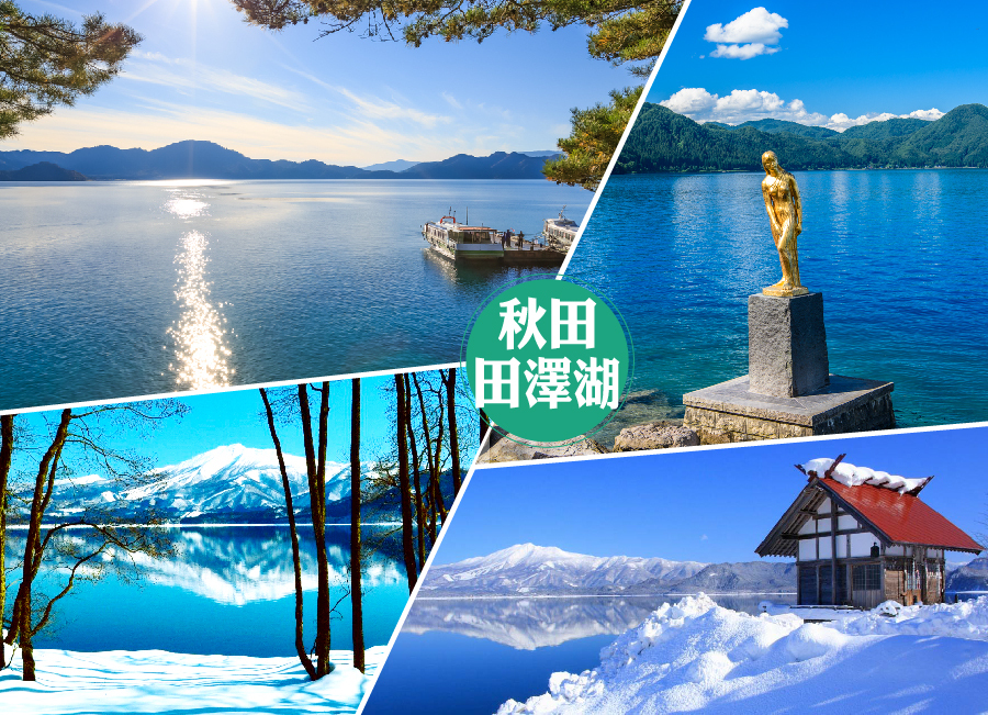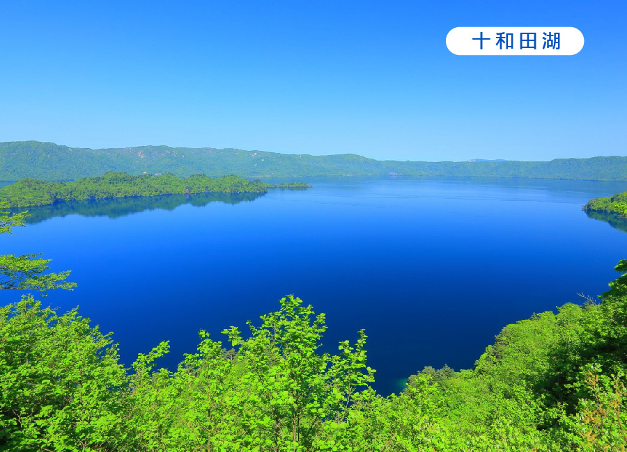 【十和田湖】周圍長約46.2公里,典型的二重式火山湖,底部深達326.8公尺,在深度上為日本第三大湖。湖面終年湛藍閃爍,散發出神秘氣氛,美麗迷人不可言喻。春天的櫻花、夏天的深綠、秋天的紅葉、冬天的白雪,四季皆可欣賞不同的自然美景。