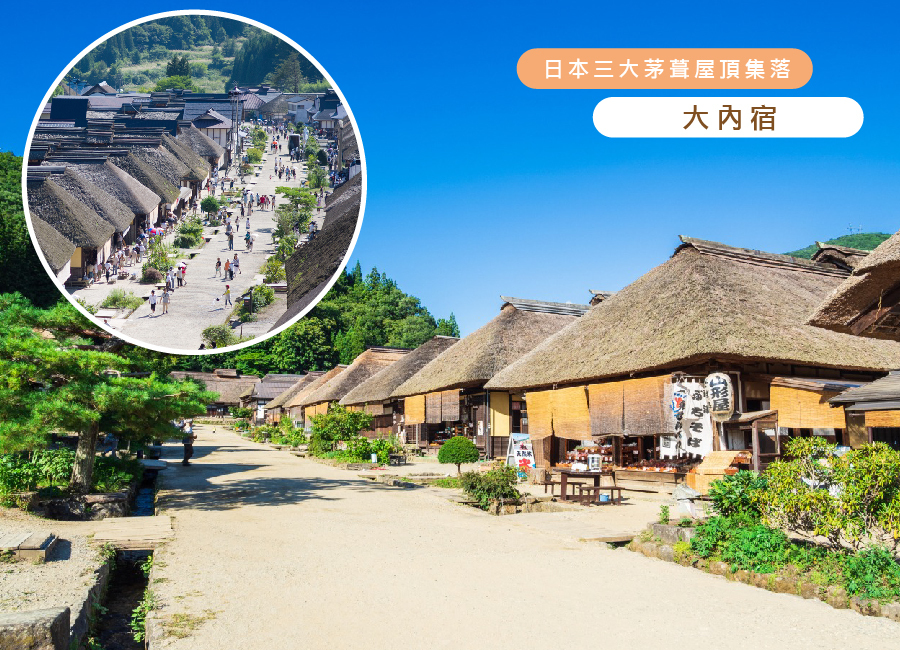 【大內宿】大內宿 是日本的三大茅葺部落之一,與京都府的「美山町」和岐阜縣白川鄉的「合掌村」同富盛名。在江戶時代,大內宿是連接會津若松市與日光市的驛站,曾經相當繁華,往來東京的商人、官賈、旅人都會在此地歇腳休憩。目前主要街道兩旁仍有四、五十家茅草屋維持著當年的樣貌,是至今仍保留著江戶時代風格的珍貴村莊。而不同於務農為主的「美山町」和「合掌村」,源自商業背景的「大內宿」,街道更顯熱絡,道路兩旁商家林立、人聲鼎沸,讓人彷彿穿越時光來到江戶幕府,而冬雪下的茅葺村莊又呈現另一種風貌,遺世獨立之美也被譽為是「東北的合掌村」。
