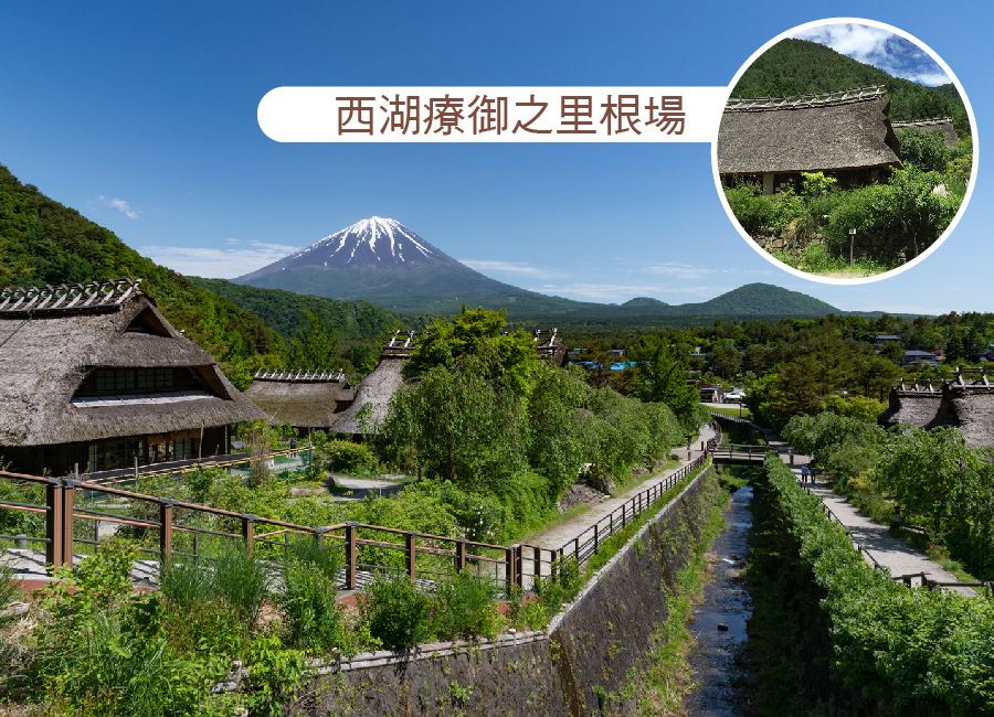 【西湖合掌村】西湖合掌村 西湖合掌村 西湖合掌村完全重現百年前日本田園景象,日本第一山富士山、優美的西湖及神祕之青木樹海一覽無遺,加上日本傳統茅茸屋,是難得可以見到日本鄉土之美的旅遊景點。步入其中猶如時光倒轉,隨便擇地而坐,即可享受到心靈療癒的時間。這裡不但可觀賞風景,每棟屋子都是不同的商店,舉凡吊雛製作體驗、吹笛人偶製作體驗、陶藝、紡織品、資料館、餐廳、特產品等全都以茅茸屋統一,完全融入原始的鄉田景觀。