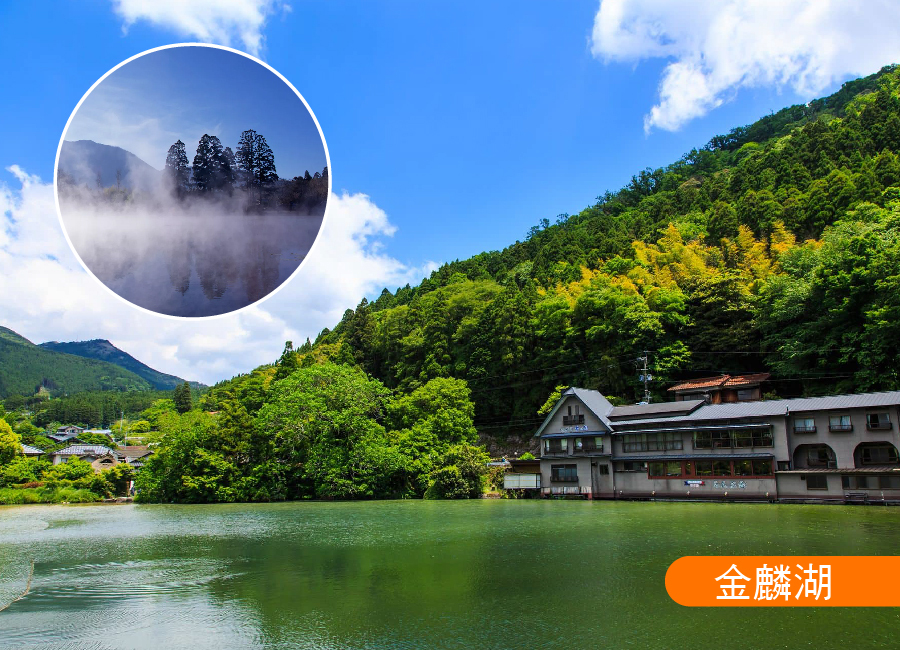 【金麟湖】由溫泉匯流而成的金鱗湖,即使是嚴冬季節,湖水也熱氣騰騰,是盆地中晨霧的來源。這一帶充滿情趣的風景,深深地迷戀了與謝野晶子和北原白秋等著名人士,是湯布院最著名的湖泊。