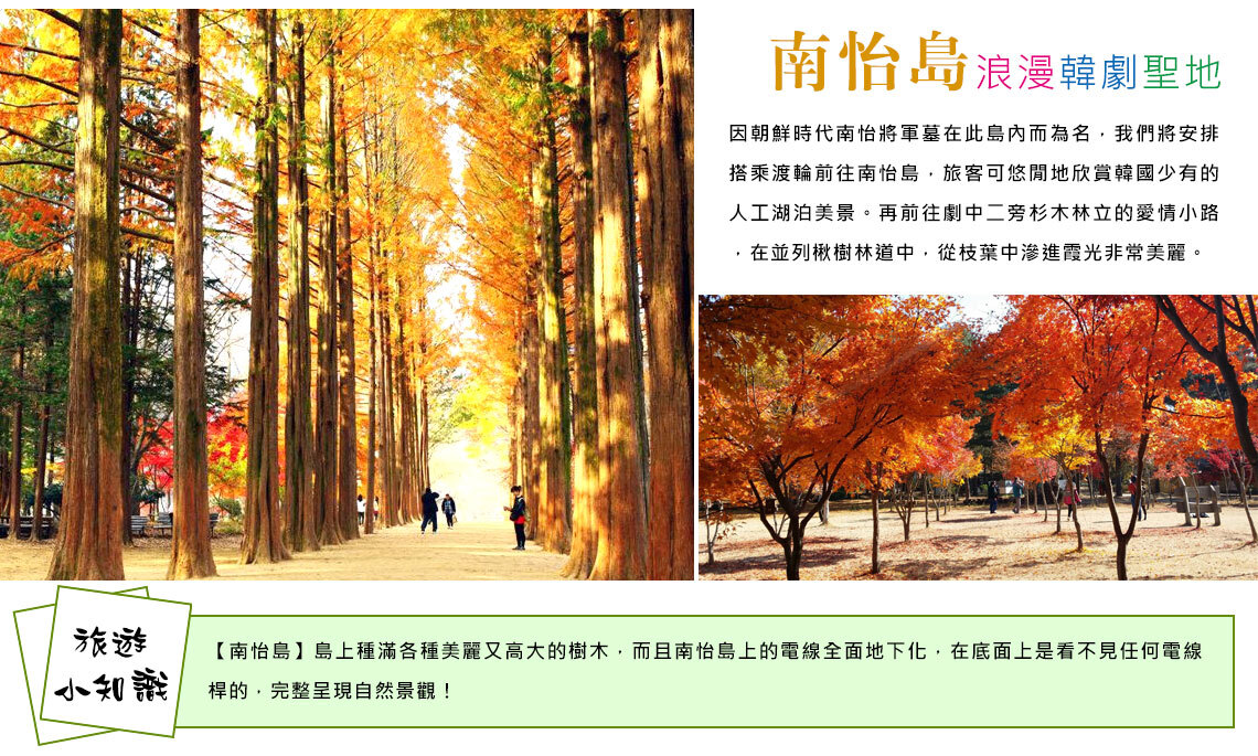 『 第3天 』 最新人氣打卡景點【加平海棠鳥園】→ 美食大探索【春川中央市場】→ 最知名韓劇<冬季戀歌>拍攝地【南怡島(含遊船)】→ 入住飯店