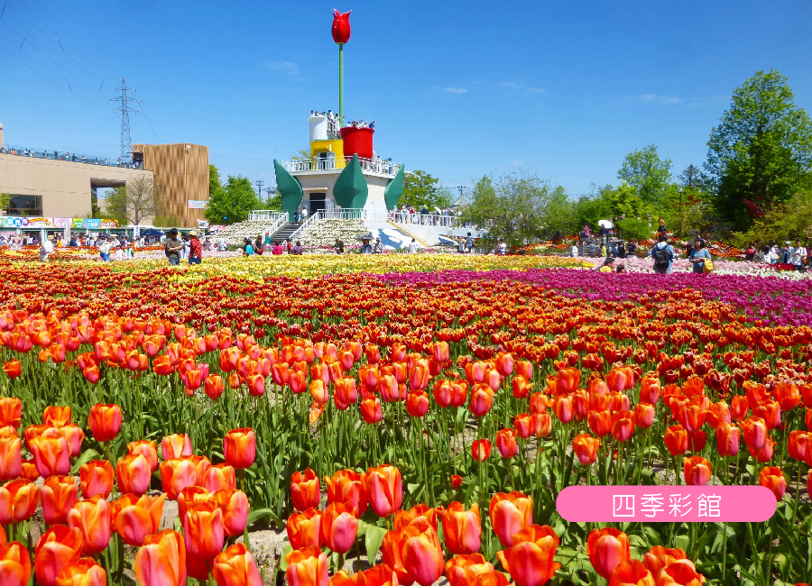 【四季彩館】鬱金香是日本富山縣的縣花,這裡也是日本鬱金香的第一產地。特別的是這裡有利用池水栽培的池中鬱金,是只有在礪波才能看到的特有種。四季彩館更有「冰鬱金香」技術和設備可以讓鬱金香開一整年,在四季彩館的鬱金香儲藏室,隨時能看到3,000朵鬱金香!您可以盡情地在廣大花海中,享受浪漫珍貴的時光。