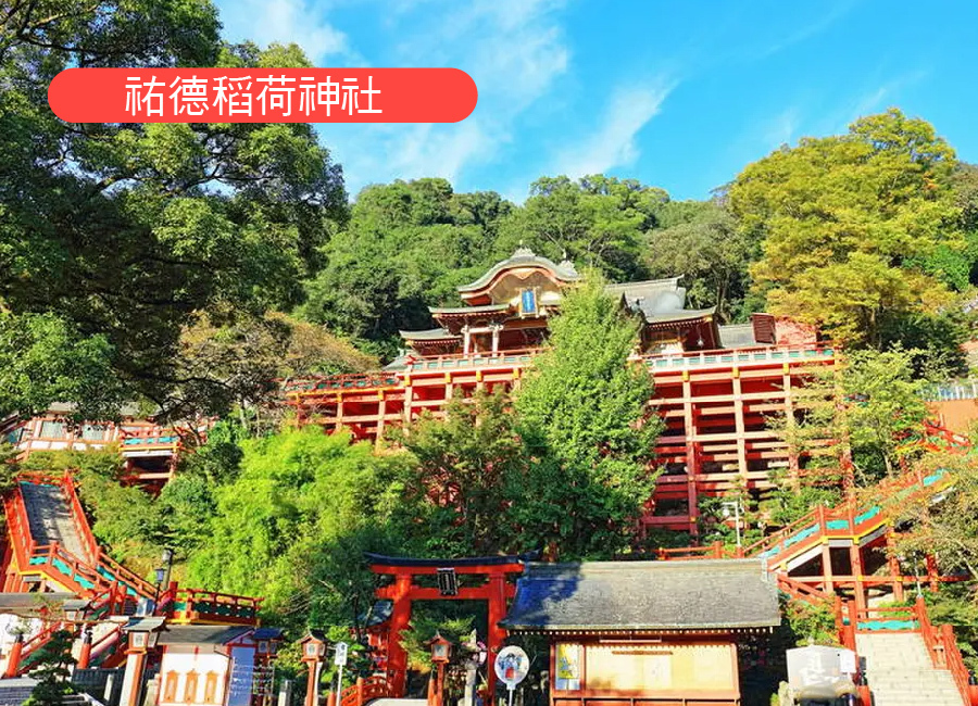 【祐德稻荷神社】祐德稻荷神社建於西元1687年,和伏見道荷、笠間道荷並稱日本三大稻荷神社。此神社的起源為鹿島藩主鍋島直朝的夫人花山院萬子姬從京都嫁入時,將京都御所內花山院邸所祭祀的稻荷大神分靈而來。本殿倚石壁山而立,在山腳的廣闊腹地內,坐落著樓門、神樂殿,神殿、拜殿等主要建築皆採用總漆塗。由於這般風格和壯觀形象,人們又稱之「鎮西日光」。