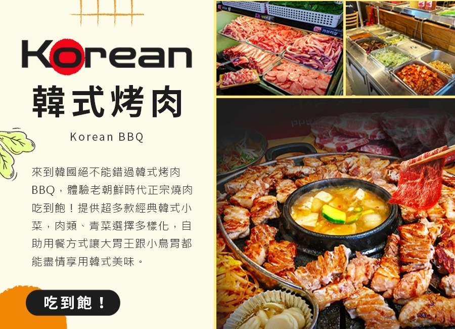| 早餐 :飯店內享用 | 午餐 :方便體驗市場美食,敬請自理 | 晚餐 :海雲台燒烤無限~五花肉+生菜蔬菜自助吧+季節性湯品 |