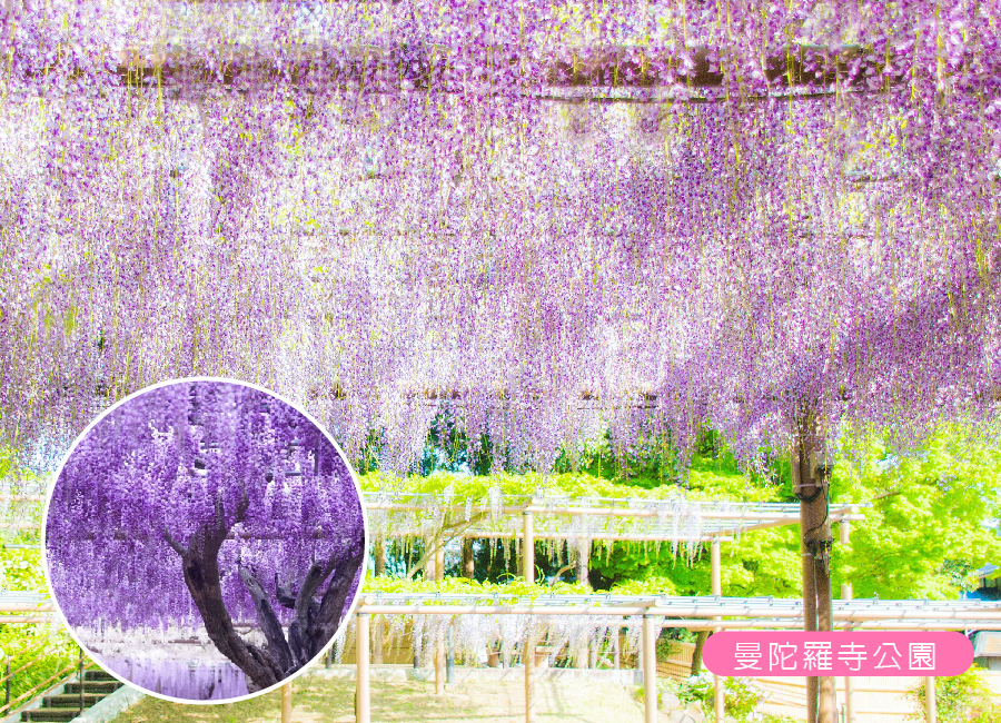 【曼陀羅寺公園~紫藤】(紫藤花見4月中旬~5月上旬) 曼陀羅寺建於14世紀前半期,其中的一部分就是現在的曼陀羅寺公園。曼陀羅寺公園以紫藤聞名,園內共有12種約60株紫藤,春天到初夏盛開的紫藤花似海如潮,壯觀美麗。每年4月下旬到5月上旬這裡還舉辦“紫藤節”,漫步在滿開的紫藤瀑布之下,真的是美到爆棚,怎麼拍都是美。