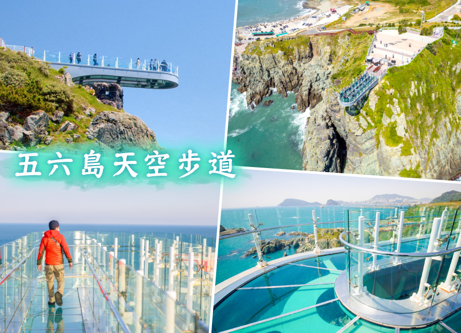 【五六島天空步道】釜山五六島天空步道是一個懸空的玻璃步道,位於海拔35公尺高的懸崖上,遊客可以透過透明的玻璃地板欣賞腳下的大海和五六島的景色。 它呈U字型,全長15公尺,是釜山著名景點之一,以其刺激的體驗和壯麗的景色聞名。