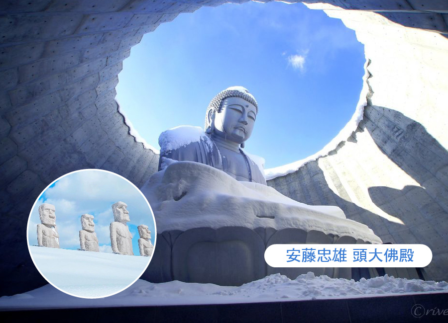 【頭大佛】北海道的「頭大佛」是在SNS上形成熱門話題的札幌全新特色景點。此地的大佛像也被視為北海道最大型靈園「真駒內滝野靈園」的象徵,由世界著名的建築師安藤忠雄設計,巧妙的利用地形,讓大佛隱身在地勢中,望向山頂時只能看見佛像的頭部,穿過隧道之後,才能欣賞到莊嚴的佛像全身,由下往上觀望,可以看見佛像背後的藍天。此地到了夏天,會被15萬株薰衣草所包圍,從夢幻的薰衣草有如紫色的波浪一般環繞山頂中間的頭大佛,形成了獨特的薰衣草觀賞景點。冬天雪中覆蓋更顯得雪美