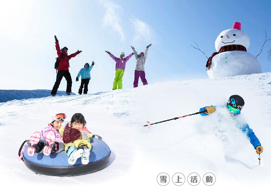 【雪上活動 (雪盆戲雪 或堆雪人打雪仗)】約12月底-3月中 讓大家不用到北方雪國,也能夠一飽滑雪盆玩雪之慾望,充分體驗雪中的趣味活動!老少皆宜,可全家一起享受雪中歡樂,滑行在白皚皚的雪地上,一面望著淺間山,一面享受滑雪盆的刺激與新奇,此情此景,將永遠留存在記憶的專輯中。
