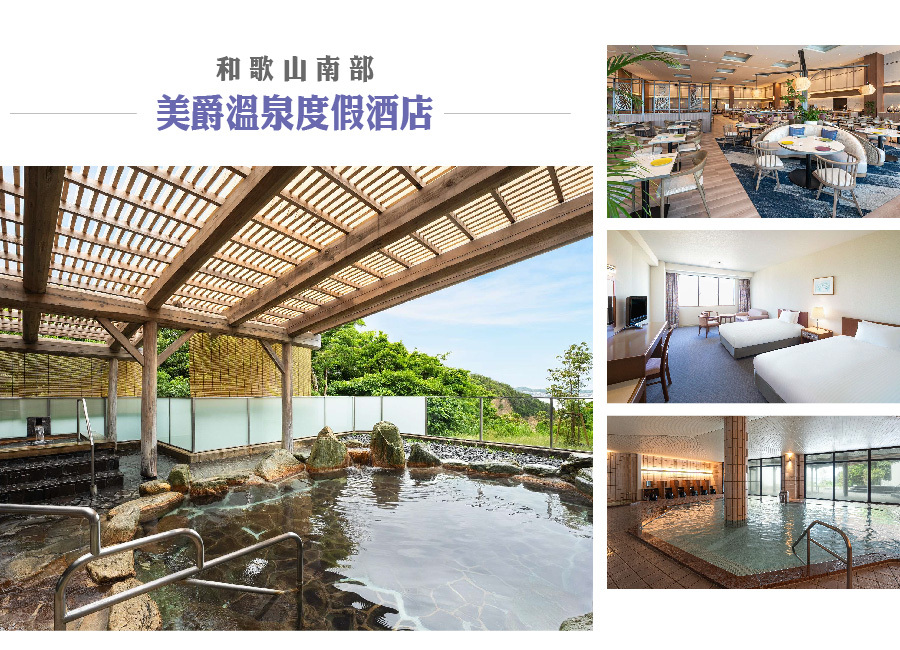 | 住宿旅館:GRAND MERCURE 和歌山南部 resort&spa 或 白濱SEAMORE 或 白濱彩朝樂 或 白濱御苑 或同等級 | ||