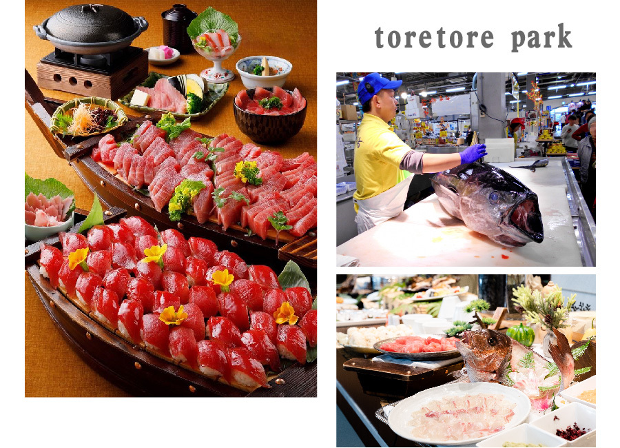 【toretore市場南紀白濱】和歌山位於近畿地區,鄰近大阪、奈良、兵庫等,被美麗的海洋與無處不見的群山環繞,因此海鮮、農作等物產豐饒。位於和歌山白濱的「ToreTore市場南紀白浜」(とれとれ市場),為西日本最大規模的海鮮市場,場內販售日本全國四季新鮮的魚蝦貝類,和歌山的農特產品。鮪魚區內每天都有解剖鮪魚秀。沒有經過冷凍的鮪魚在此處分切銷售,此起彼落的叫賣聲非常有趣,千萬不要錯過新鮮的鮪魚生魚片哦!鮮魚、活魚區不僅提供新鮮直送的和歌山以及日本各地的魚類,還有北海道的活螃蟹(活がに)、伊勢龍蝦(イセエビ)等,與市中心的海鮮市場想比之下價錢合理,喜歡吃生魚片、扇貝、生蠔的你絕對要把握機會。市場內設置北海道區,此區販售北海道產的鮭魚、鮭魚卵、昆布、冷凍螃蟹(冷凍かに),讓你在日本本州就能吃到北國的美味佳餚。