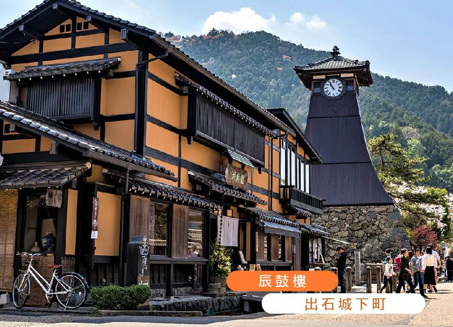 【出石城下町】 出石町位於兵庫縣北邊的豐岡市,出石町有悠久的歷史,因此號稱但馬小京都。出石是《古事記》《日本書記》等古書上有記載的古老的城市,也在1600年代,德川家康在“關原之戰”勝利後分封俸祿五萬八千石的的出石藩的城下町,現在還保留了許多當時城下町的房屋及街道。出石城1604年建城,1871年明治維新後廢城,城樓已經沒有了,但是出石城的隅櫓、城門、跨橋等建築按照原來的模樣重建。特別安排日本當地導遊導覽行程並解說,使您更貼近出石城下町的歷史與文化,讓您在這個風格獨特的小鎮,古樸的建築加靜謐的氛圍充分的享受散步的快樂。