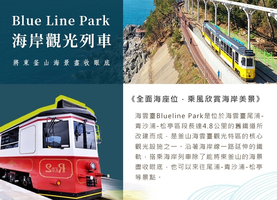 『 第3天 』 絕美海景古剎~海東龍宮寺 - 熱門打卡景點~海雲台海岸列車(單程) - 孔劉推薦家鄉景點~青沙浦墊腳石展望台 - 韓國廣告最愛拍攝地~紅白戀人燈塔 - 漫步海雲台海濱 - 在地美食吃透透~【海雲臺市場】