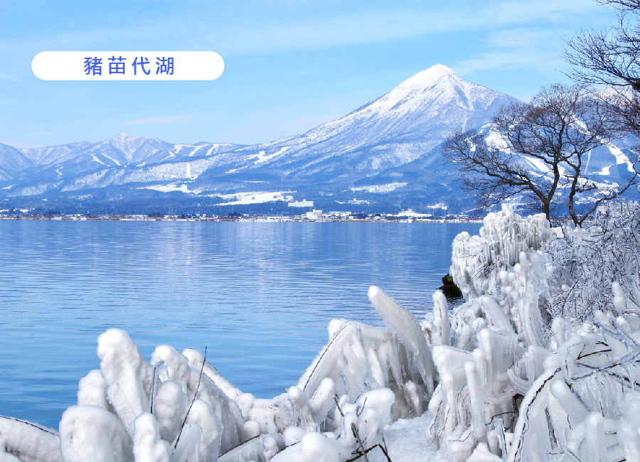 【豬苗代湖】位於磐梯朝日國立公園的外入口處,此湖猶如天鏡把磐梯山的英姿映照在湖面上,因而也被稱作「天鏡湖」,湖水的透明度在世界上也數一數二,倒映在湖面的是週圍盤梯山的美景,特別是秋季時的楓紅姿態,更堪稱一絕。豬苗代湖是日本東北福島縣很有特色的景點,它是全日本第四大湖,天氣晴朗時,能見到湖面上磐梯山的美麗倒影,因此又有「天鏡湖」之稱,每年一到了冬季,岸邊有成群從西伯利亞來過冬的天鵝和野鴨,相當熱鬧,還有冬日奇景「しぶき氷」,獨特的冬天景觀,讓豬苗代湖成為福島冬日必訪的景點。