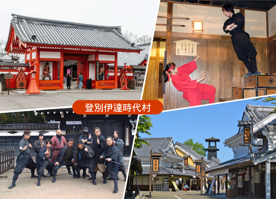 【登別伊達時代村】 登別伊達時代村是可以藉由娛樂體驗日本江戶時代(1603年-1867年)的歷史及文化的時代主題樂園。在這按照時代考證的正統木造建築群所製造出的、江戶時代鄉土氣息的寬廣城鎮內,有展現動作俐落及震撼忍術的忍者武打秀、華麗服飾的花魁劇場、以日本江戶時代生活為題材的爆笑時代劇場等精彩演出可以觀賞。廣大的時代村園區從一進門開始,就彷彿回到江戶時代一樣,無論是建築、或是工作人員的穿著,甚至使用的語言,都是親切的江戶腔調。這裡所有的工作人員全部穿著日本江戶時代的平民服裝;無論是走在路上的、還是特產店及餐廳購物的工作人員,讓整個村莊充滿了江戶時代的神秘氣息。 可前往社會學問所,體驗江戶時代的學生生活,或是在商店街逛街,原汁原味的江戶風情,活生生在這裡上演著。登別伊達時代村展示精巧妖怪人偶的〈妖怪驚奇小屋〉,貓妖怪鬼屋〈御貓寺〉,重現了江戶時代的古街〈商家街〉,由忍者設計不可思議的迷宮〈忍者怪怪迷路〉,可體驗投擲忍者手裏劍及弓箭等的〈體驗道場〉,重現了江戶時代大眾房屋的〈熊先生長屋〉,可以穿著和服變身為殿下或公主的〈UTSUROI館〉,以及吹箭、套圈圈遊戲的〈遊戲館〉,不單孩童可以充分的享受時代遊樂氣氛,即使大人,也有瞬間重回少年時代的感動。